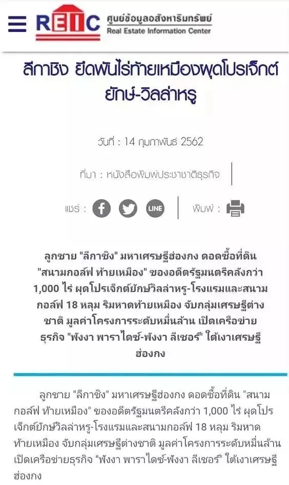 该公司官网显示,盈科大衍地产发展有限公司(PCPD)在2018年12月3日召开董事会,该公司旗下的“Hi Game Golf”合资公司将在泰国攀牙府(Phang Nga)经营房地产开发业务。