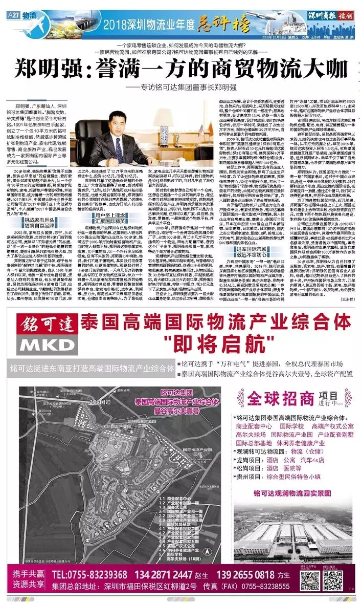 喜讯:suncitygroup太阳新城挺进东南亚打造高端国际物流产业综合体暨创始人suncitygroup太阳新城集团董事长郑明强荣获2018深圳物流业年度总评榜十大领军人物奖
